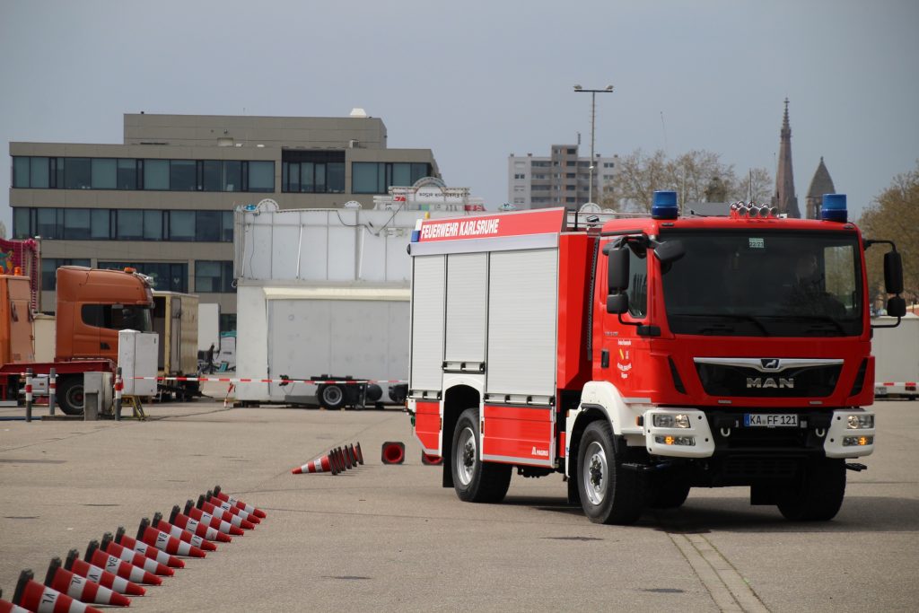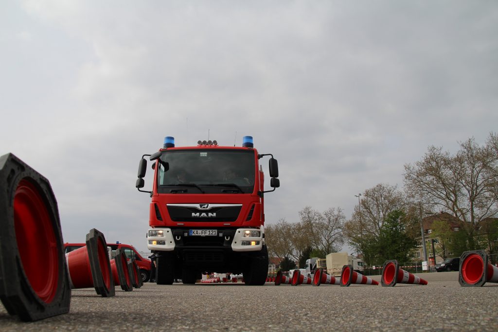 Am Samstag, den 06. April ging es für sechs Maschinisten Richtung Rheinhafen. Dort wurden wir in unser neues TLF 3000 eingewiesen. Wir durften das Fahrzeug und die Technik auf Herz und Nieren testen. Nach ersten Einweisungsfahrten ging es Richtung Messplatz, im Osten Karlsruhes. Dort wurde ein Parcours mit Pylonen aufgebaut und jeder musste diesen Vorwärts und Rückwärts bewältigen.